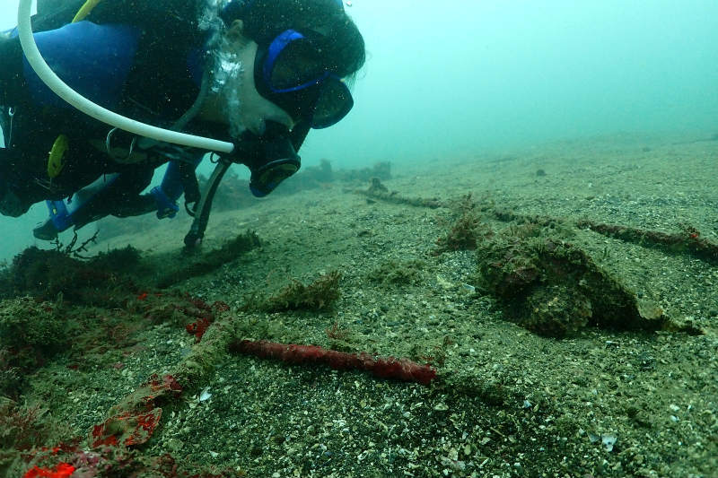 水中に沈んで漁礁にしている土管の中に入ったりして楽しんだようです。