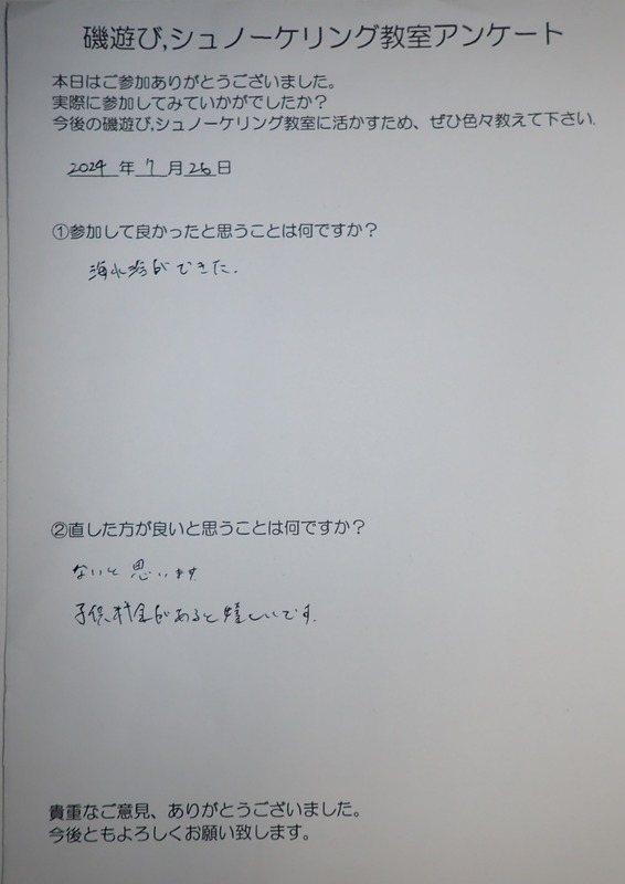 磯遊び教室,シュノーケリング教室(2024年7月28日)
